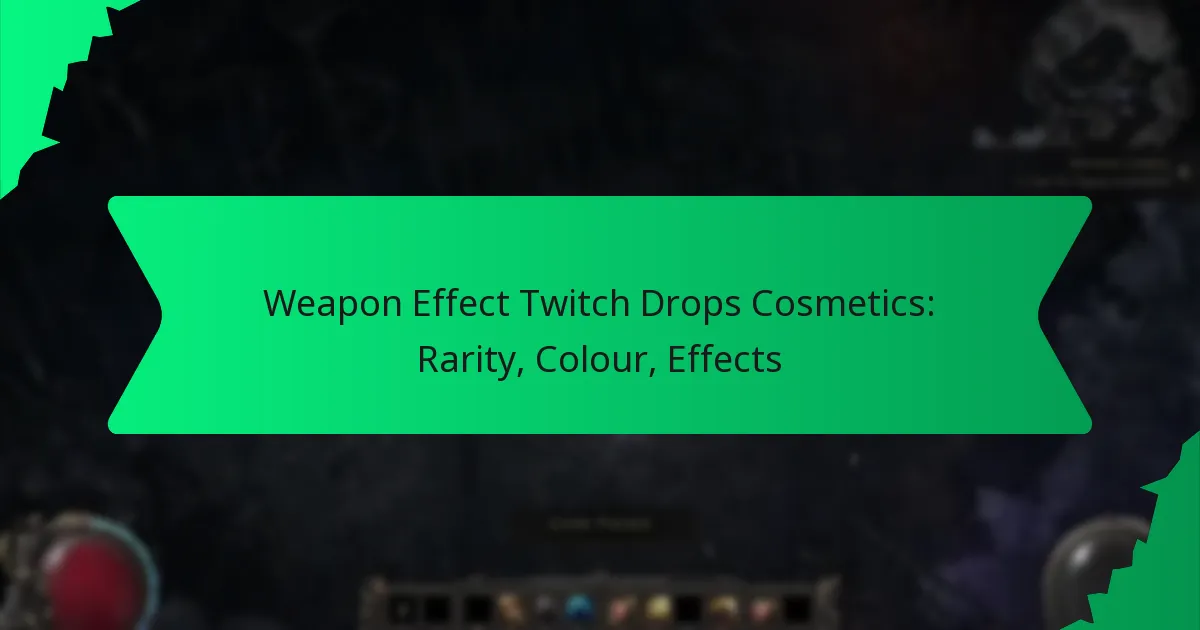 Weapon effect Twitch Drops cosmetics are unique visual enhancements for weapons that players can earn by watching Twitch streams. These cosmetics not only alter the appearance of weapons but also introduce distinctive effects, allowing players to express their achievements and style in-game. The rarity of these cosmetics is determined by tier classifications, visual effects, and community feedback, while a diverse palette of colours adds to their visual allure.